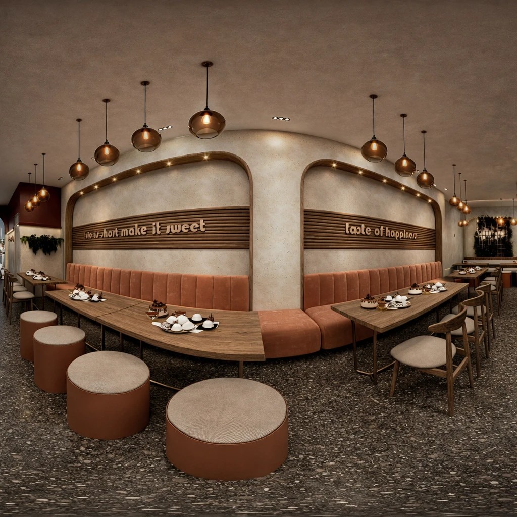 Delivered the full interior design and fit-out for Gwalia Sweet Shop, an Indian sweets-and-coffee concept. The design features a modern aesthetic with warm tones, clean display areas, and a welcoming layout that highlights traditional sweets, creating a comfortable, contemporary café-style environment for customers.
